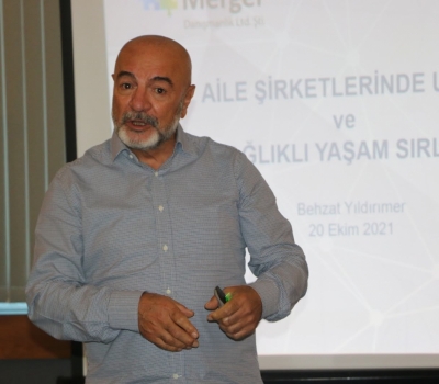 Eğitimci ve Tim Danışmanlık Başkanı Behzat Yıldırımer ile Elektronik Mühendisi ve Öğretim Görevlisi Muharrem Gezer katılımcılara; "Dijital Ekonomi ve Yeni İş Modelleri" ve "Aile Şirketlerinde Uzun ve Sağlıklı Yaşam Sırları "na yönelik önemli bilgiler verdi